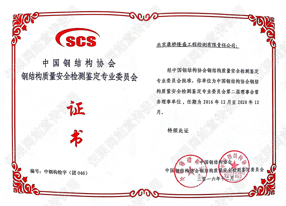 中国钢结构质量安全检测检测鉴定专业委员会常务理事单位