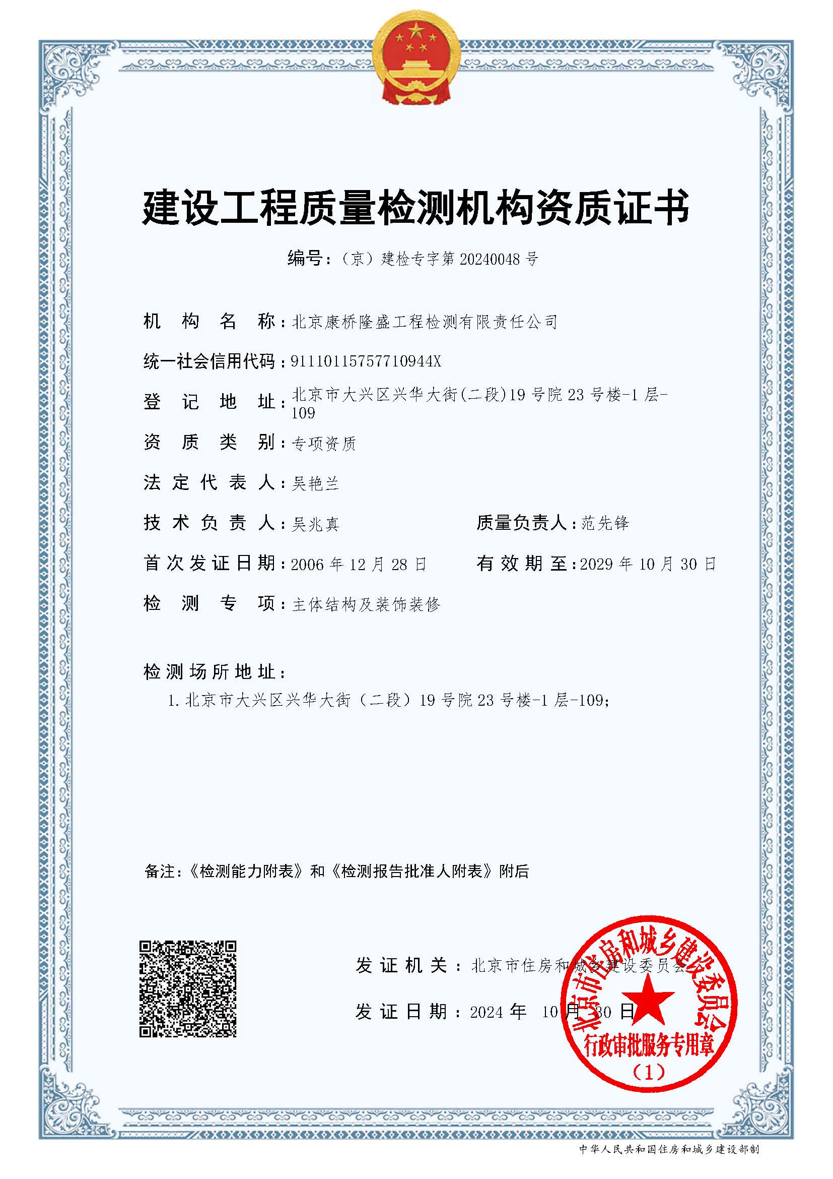 建设工程质量检测机构资质证书
