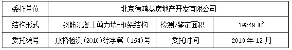 委托原因 现因办理房产证,但该工程缺少部分验收资料,受北京德鸿基房地产开发有限公司的委托,我公司对该建筑结构安全性进行检测鉴定,为后续产权办理提供资料。