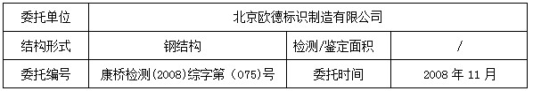 委托原因 该23块标识牌已经使用多年,为了了解该标识牌的安全性能否满足正常使用要求,受北京市欧德标识制造有限公司的委托,对23块标识牌进行结构安全鉴定。